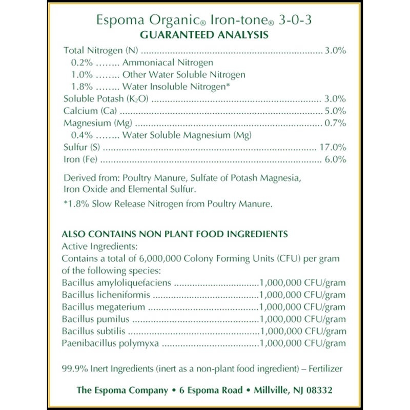 Espoma Organic Iron-Tone 3-0-3 Organic Fertilizer and Plant Food